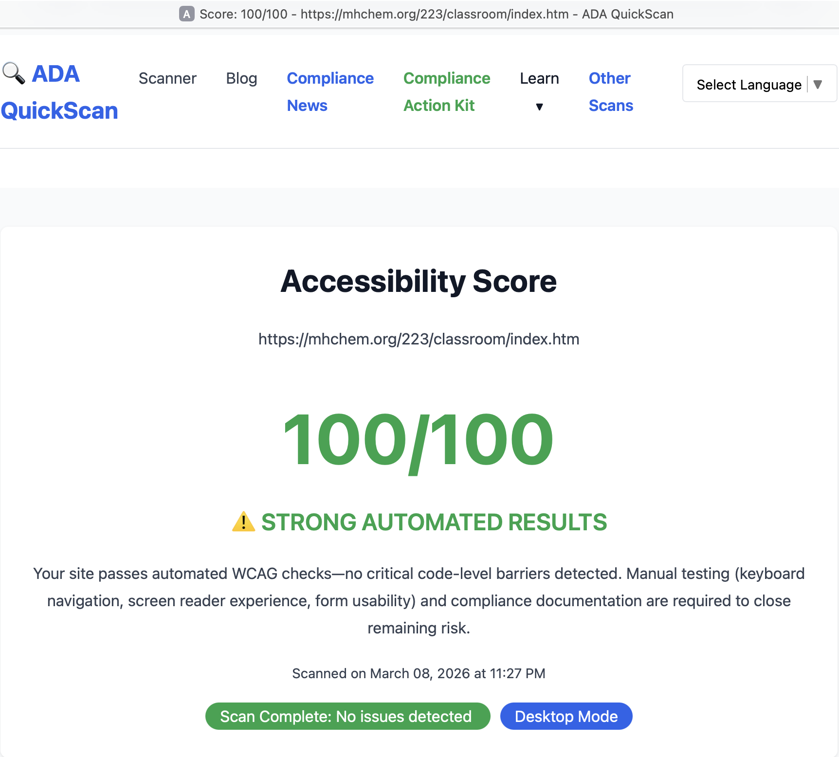 An evaluation report for MhChem with Dr. Michael Russell is available at: https://mhchem.org/accessible/Certificate_GF-2026-C7919A.pdf.